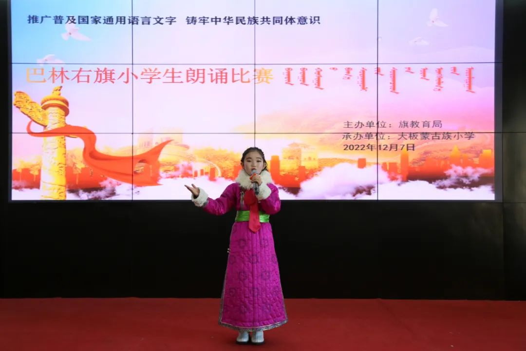 为深入贯彻落实党的二十大精神,进一步推进文化认同,筑牢民族团结之根、凝聚民族和睦之魂,认真做好推广普及国家通用语言文字工作,近日,巴林右旗举办了“推广普及国家通用语言文字 铸牢中华民族共同体意识”小学生朗诵比赛,各级各类学校教职工及42名参赛选手共113人参加比赛。